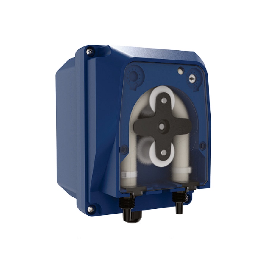 - Перистальтический насос с постоянной производительностью и аналоговым регулированием времени дозирования, используемый для дозирования моющего средства.
